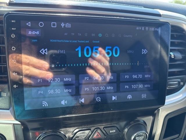 , *Aftermarket Stereo with Back-up Camera*, *Vehicle Has Been Tuned*, 115V Auxiliary Power Outlet, 4-Wheel Disc Brakes, 40/20/40 Split Bench Seat, ABS brakes, Air Conditioning, Anti-Spin Differential Rear Axle, Brake assist, Bright/Bright Billets Grille, Center Hub, Charge Only Remote USB Port, Delay-off headlights, Dual front impact airbags, Dual front side impact airbags, Electronic Stability Control, Electronically Controlled Throttle, Fog Lamps, Folding Flat Load Floor Storage, Front anti-roll bar, Front Armrest w/Cupholders, Front Center Seat Cushion Storage, Fully automatic headlights, Leather Wrapped Steering Wheel, Locking Tailgate, Lone Star Badge, Lone Star Regional Package, Low tire pressure warning, Next Generation Engine Controller, Occupant sensing airbag, Overhead airbag, ParkSense Rear Park Assist System, ParkView Rear Back-Up Camera, Power 10-Way Driver Seat, Power Lumbar Adjust, Power steering, Power windows, Premium Cloth 40/20/40 Bench Seat, Quick Order Package 2FY Lone Star (Regional), Rear 60/40 Split Folding Seat, Remote Start System, Speed control, Steering Wheel Mounted Audio Controls, Storage Tray, Tip Start, Underhood Lamp, Variably intermittent wipers, Wheels: 18" x 8.0" Polished Aluminum.